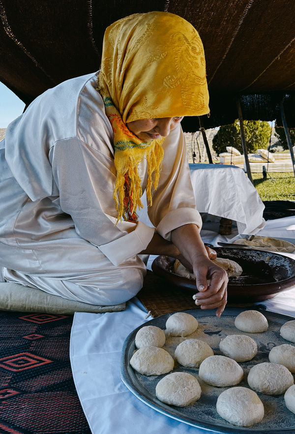 It is one of the daily tasks of the Amazigh (Berber) women that we offer you to experience for a few hours. An original and friendly way to “taste” the Amazigh culture. Kaoutar, our cook, will accompany you through all the necessary steps to make your bread. Mixing the ingredients, kneading the dough, sprinkling with wheat flour, letting it rest, and baking it in a traditional oven.