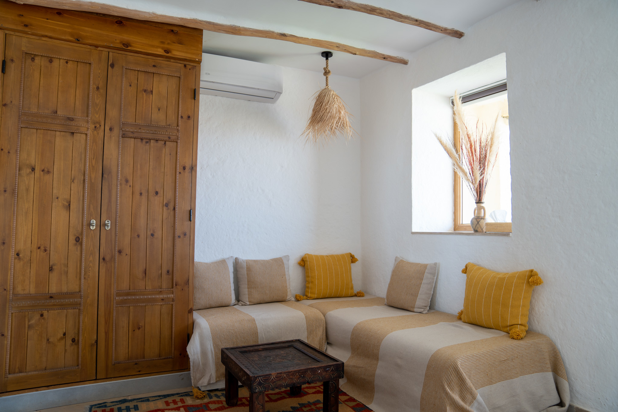 Discover the charm of the Middle Atlas in our Superior Double Room, a haven of comfort and authenticity. Designed with a welcoming sitting area, this spacious retreat combines Berber-inspired décor with noble materials for a warm and elegant atmosphere.