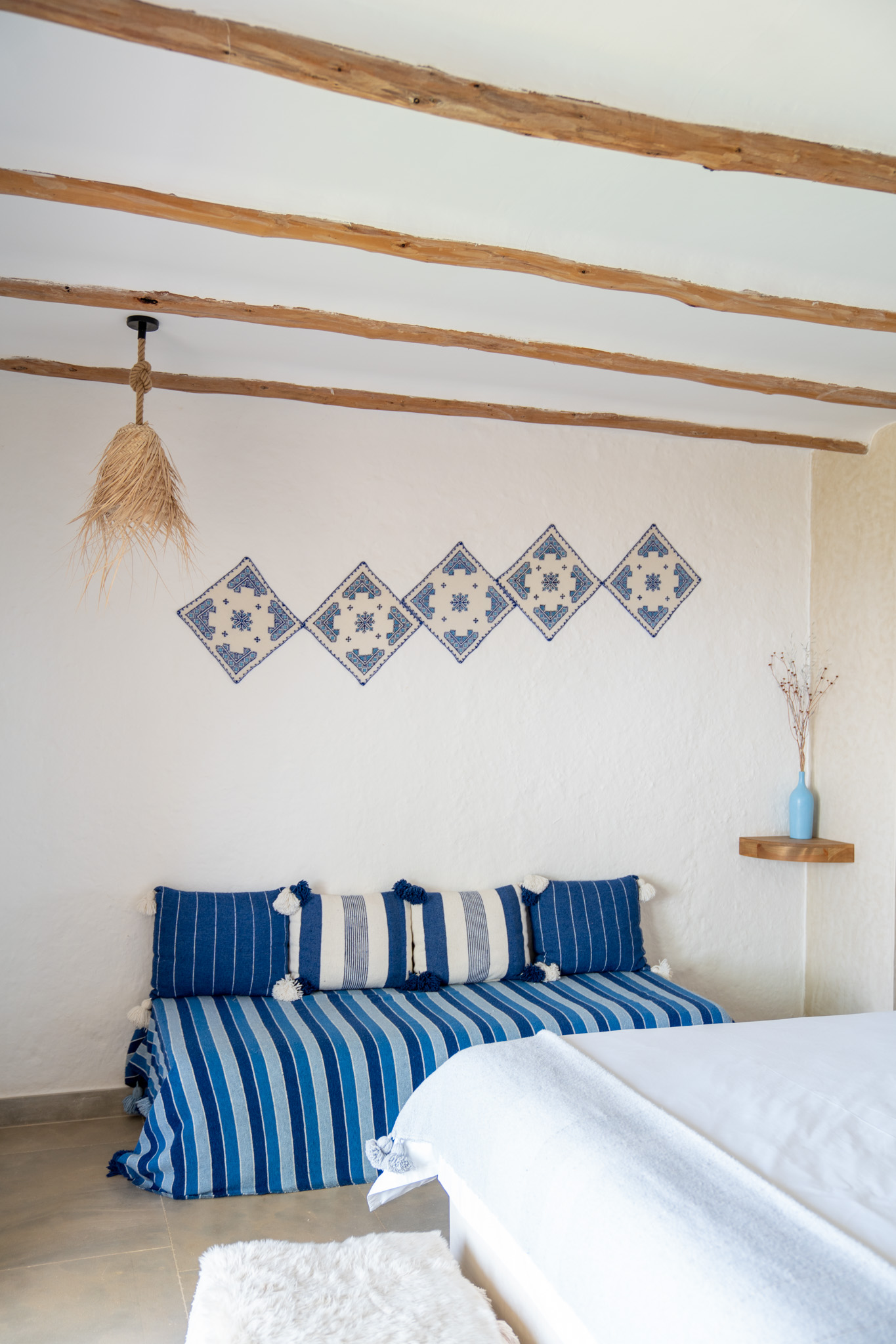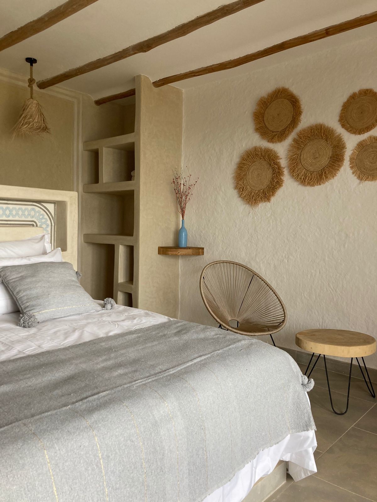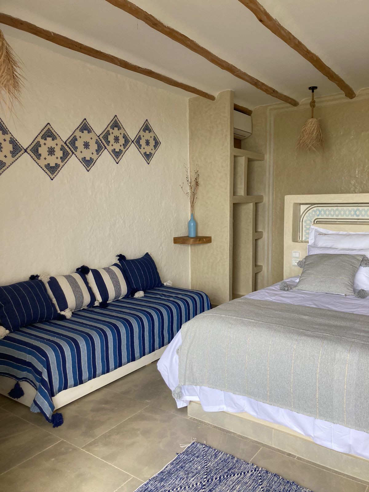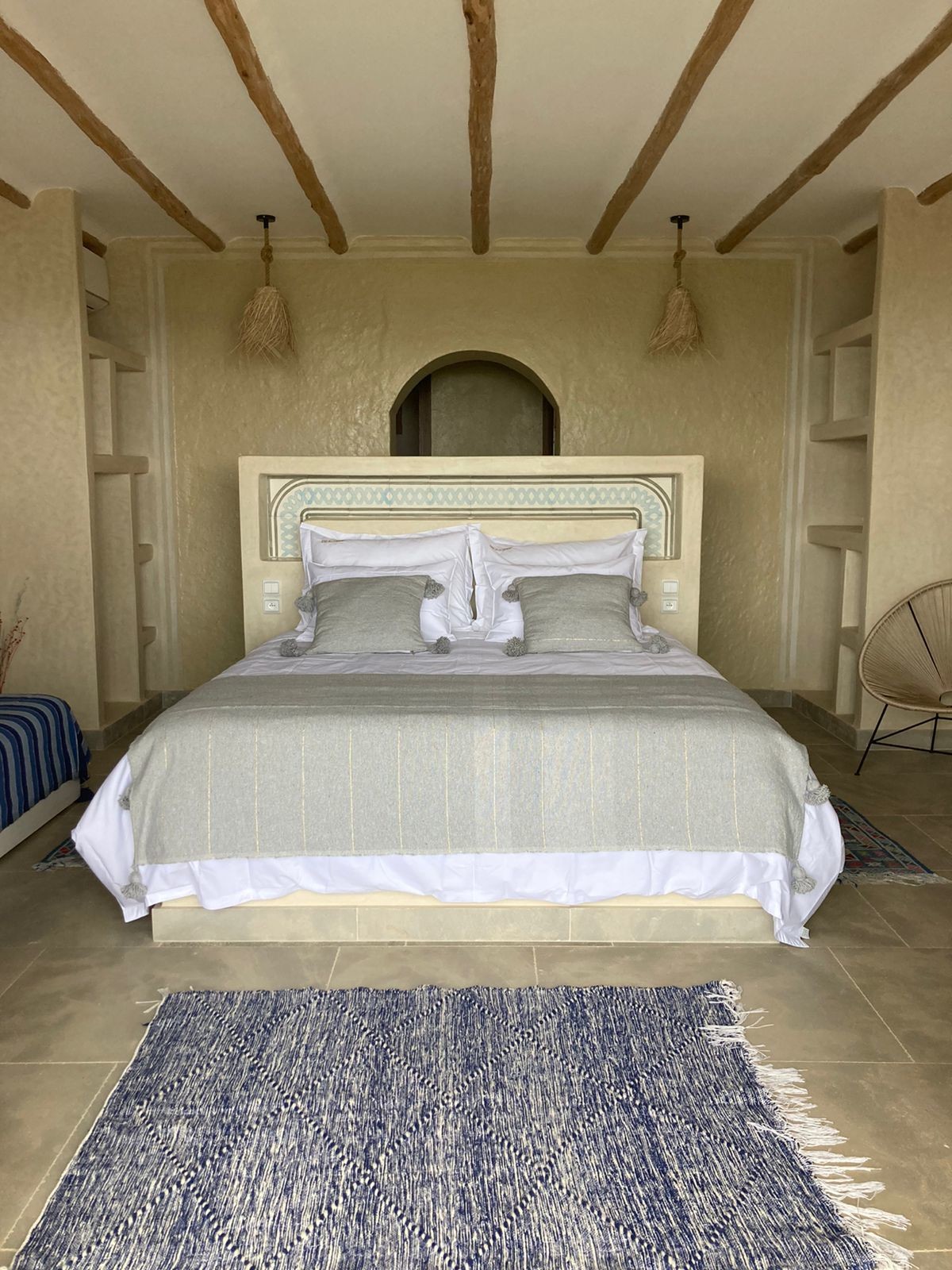 Step into elegance and authenticity with our Superior Double Room N°6, a spacious retreat designed for comfort and serenity. Blending Berber-inspired décor with noble materials, this room offers both warmth and sophistication.