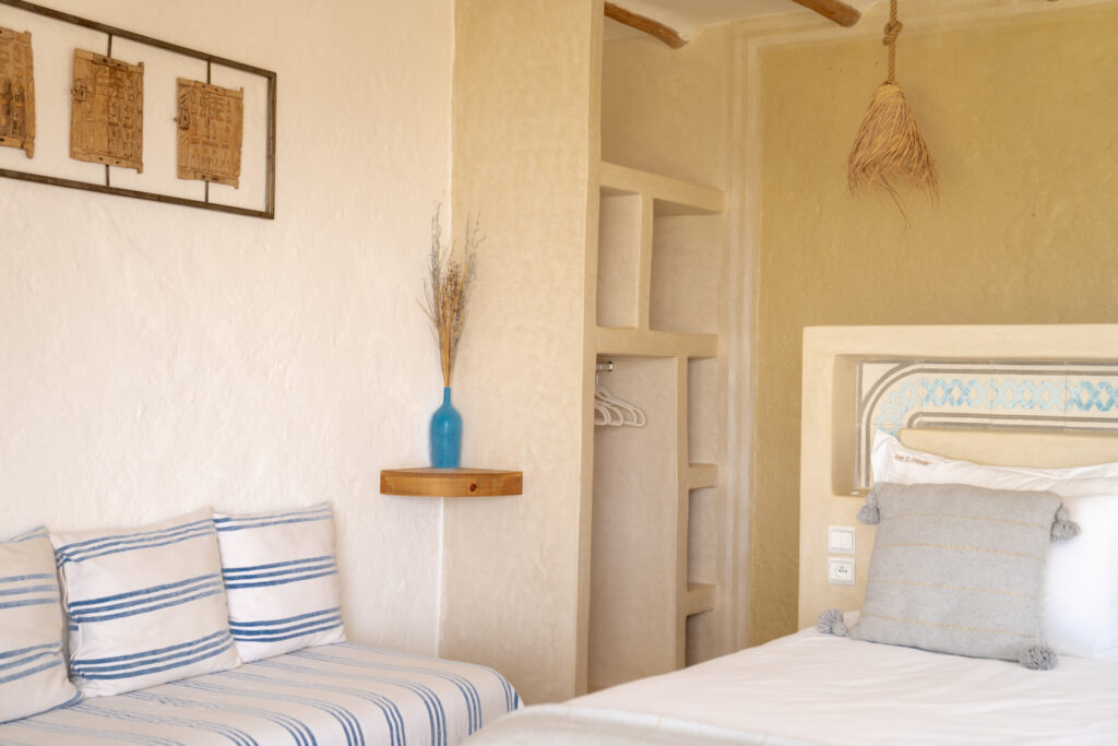 • Une chambre fait face aux majestueuses montagnes de l’Atlas.